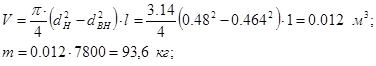 суммарная масса теплоносителя, трубы, изоляции, кг,