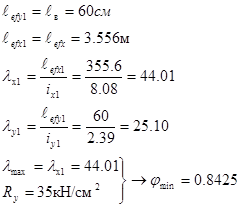 Выполним расчет колонны относительно материальной оси Х.